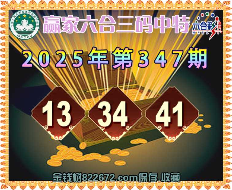 347期:【赢家六合】 🧩三码中特🧩【13.34.41】开:13准上榜高手