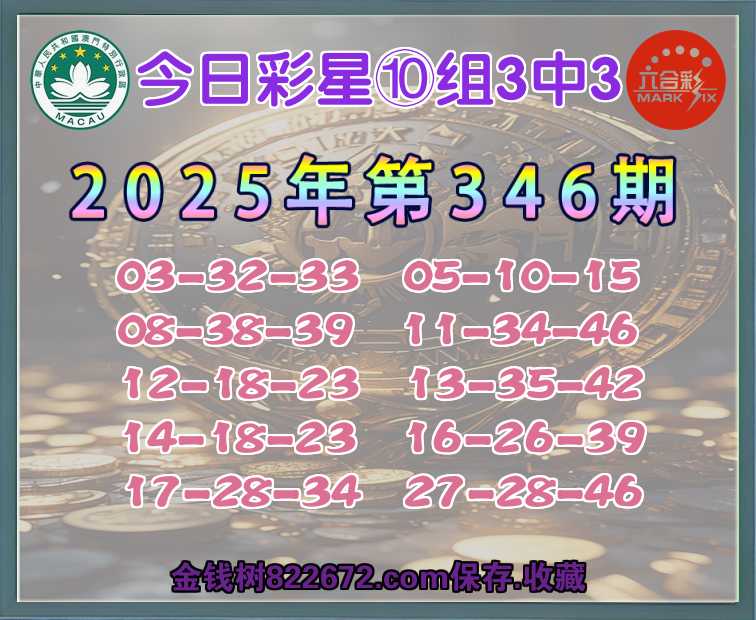 346期:〖今日彩星〗 🏇⑩组3中3🏇