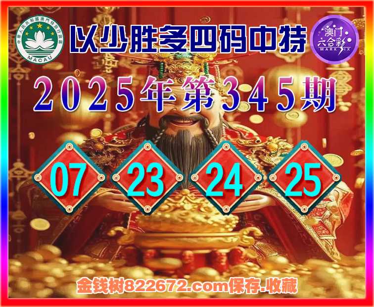 345期:《以少胜多》 ♠️四码中特♠️【07.23.24.25】开:24准上榜高手